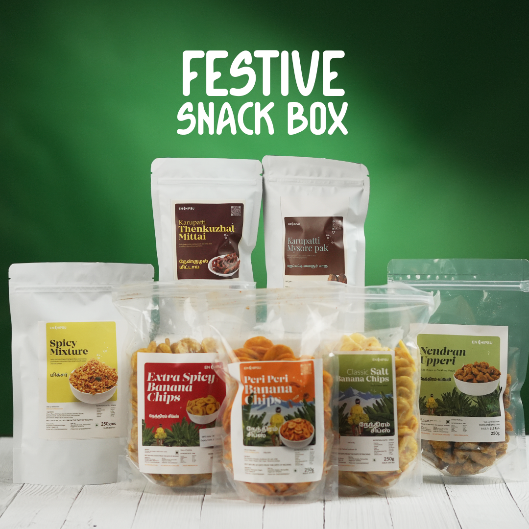 Enchipsu offers a wide range of delicious snacks, made in the most traditional methods — all the way from Nagercoil!