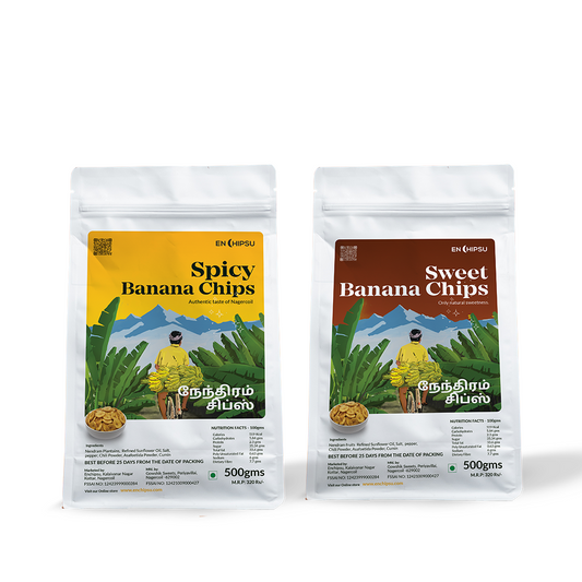 Nendran Combo - Spicy Banana Chips + Sweet Banana Chips + Upperi