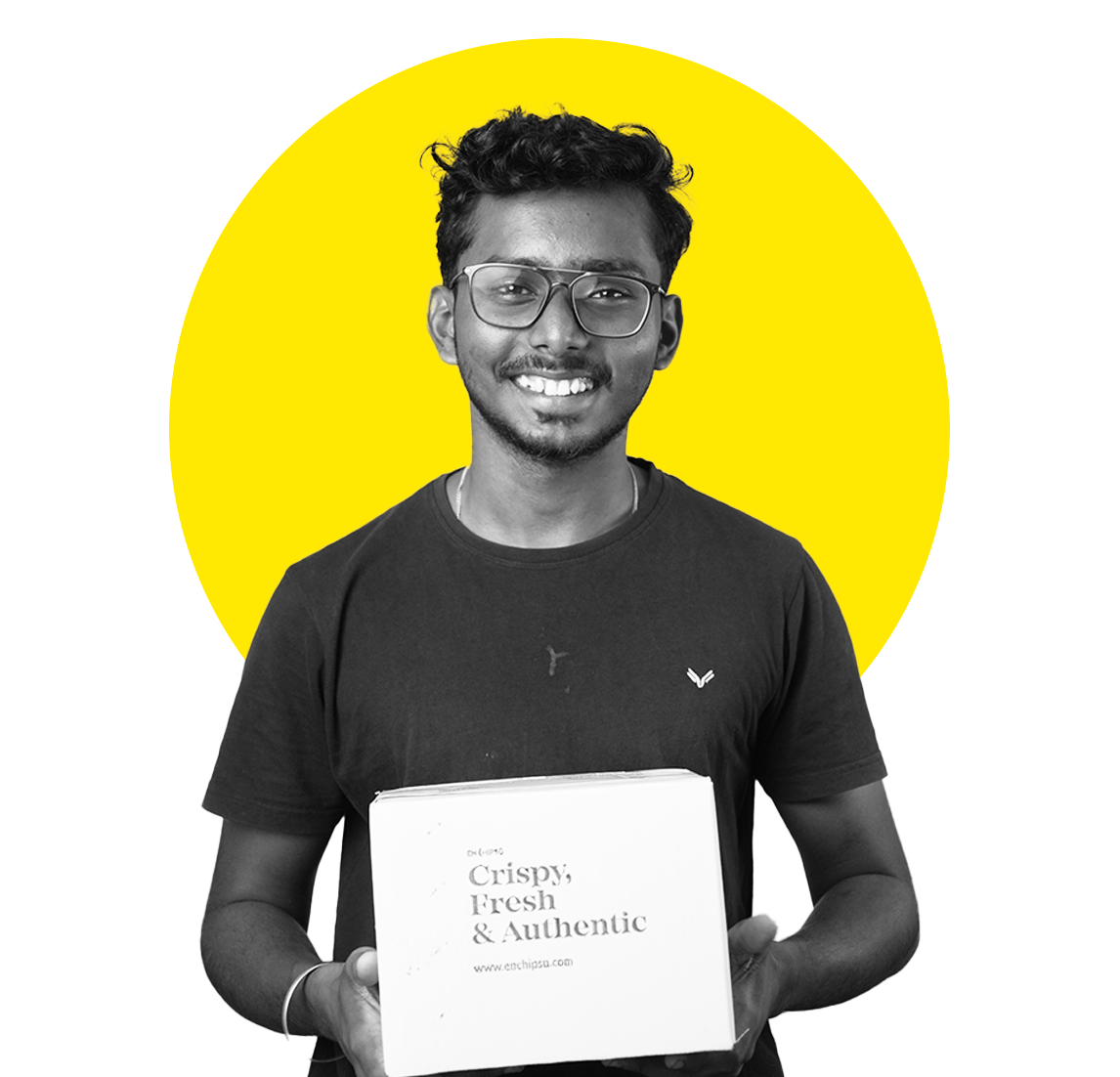 Say Hi to Vishnu, the youngest and hardworking member of Enchipsu. Vishnu brings boundless energy and enthusiasm to his role, ensuring that every bag of chips is carefully packaged and delivered to our customers with the utmost care.