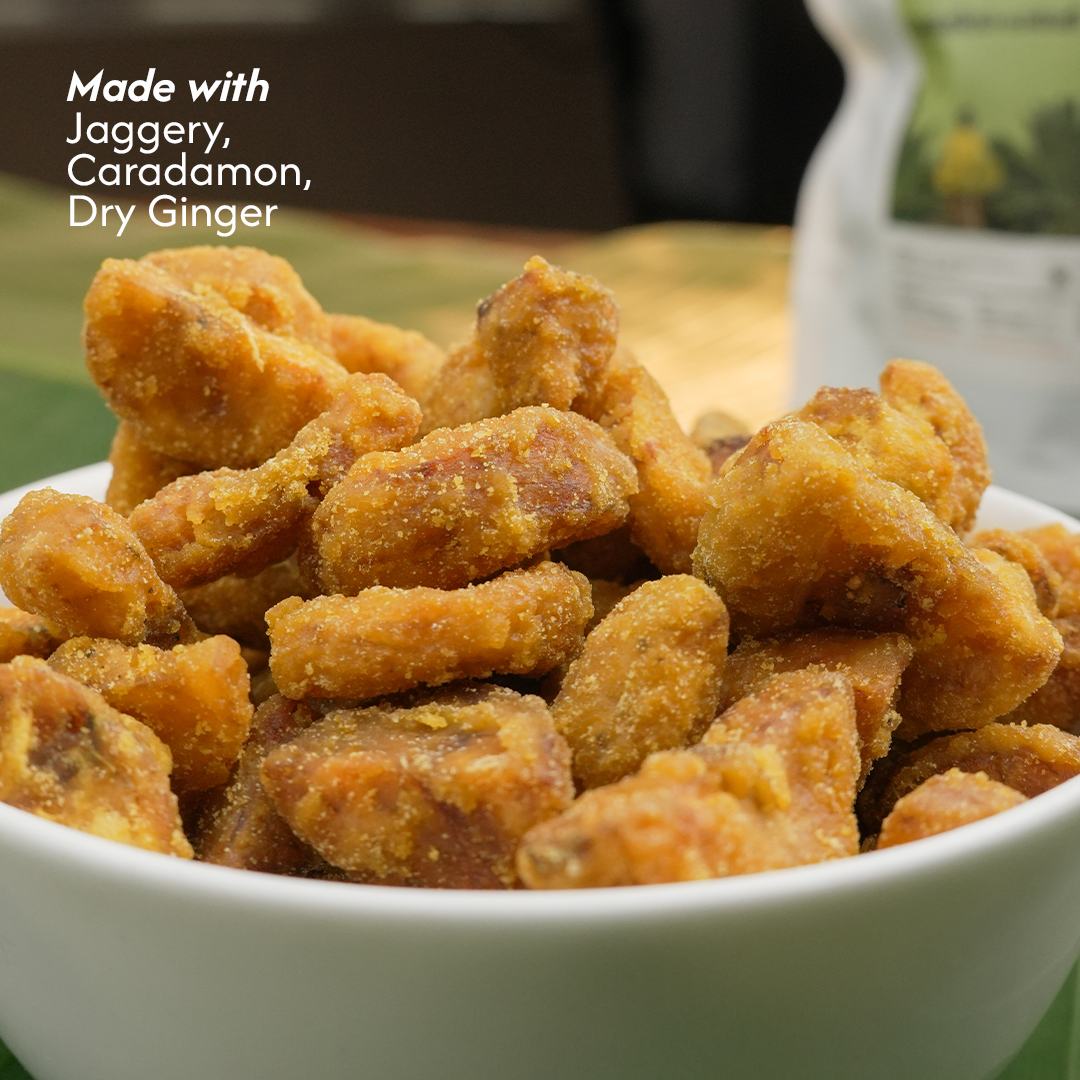 Taste crispy Upperi coated with jaggery and sugar syrup from the land of Nanjil Nadu. A blended with raw banana - Nendrangai and Jaggery, Sharkara Varatti as known as Upperi is enriched with the traditional and spicy flavours of ginger, cumin cardamom to give an exotic taste